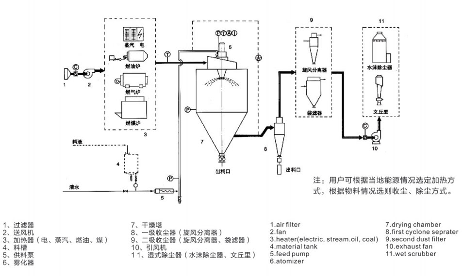 1、熱氣流與霧滴的接觸:有足夠量的熱氣流進(jìn)入噴霧干燥室時(shí),必須考慮熱氣流的方向及角度,無論是并流、逆流還是混流,確保與霧滴的接觸,才能進(jìn)行充分的熱交換。
